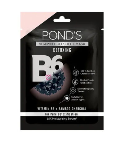 Pond’s Detoxing Charcoal Sheet Mask 25ml – with activated charcoal for deep cleansing, detox, and glowing skin. Order fresh from Shanti Fresh Bhubaneswar.