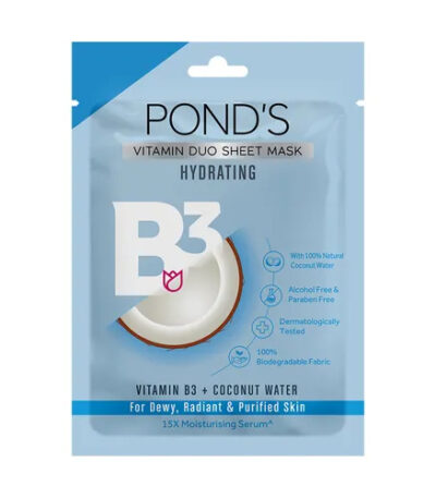 Pond’s Hydrating Coconut Sheet Mask 25ml – infused with natural coconut water for instant hydration and dewy glow. Buy now from Shanti Fresh Bhubaneswar.