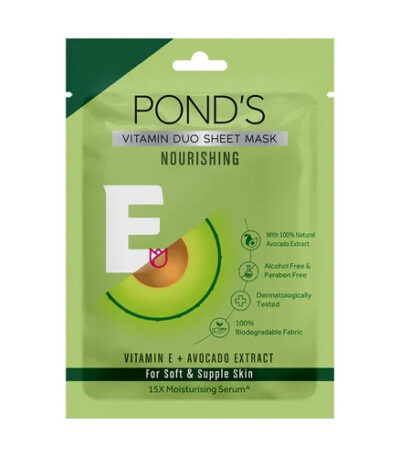 Pond’s Nourishing Avocado Sheet Mask 25ml – hydrating face mask enriched with avocado and Vitamin E for deep moisture and instant glow. Buy now from Shanti Fresh Bhubaneswar.