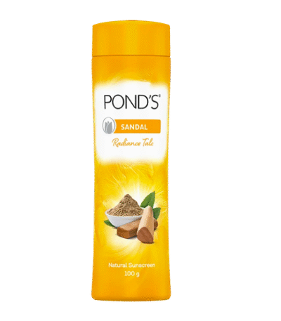 Pond’s Sandal Radiance Talc (100gm) – infused with natural sandalwood for glowing, smooth, and fragrant skin. Keeps you fresh and confident all day.