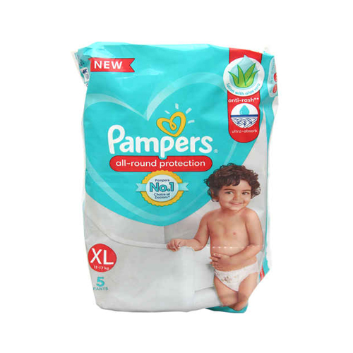 Pampers All-Round Protection Pants XL (12–17kg) – 5 Pants Pack for up to 12 hours dryness, leak protection, and soft comfort. Order from Shanti Fresh Online Grocery Bhubaneswar.