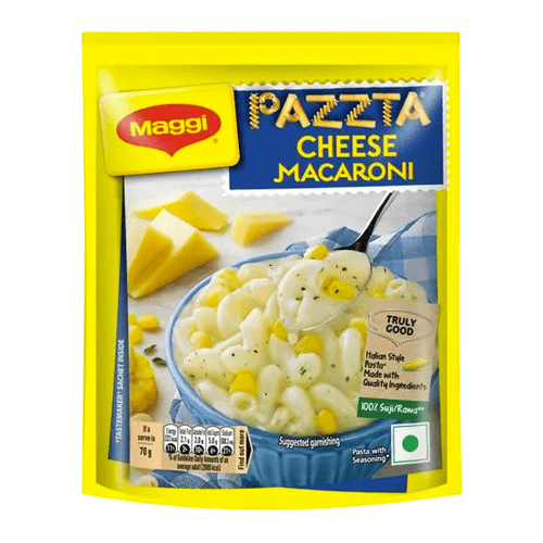 Maggi Pazzta Cheese Macaroni 75gm – made from 100% suji and packed with rich, creamy cheese flavor. Quick, tasty & fun to cook. Available at Shanti Fresh Bhubaneswar.