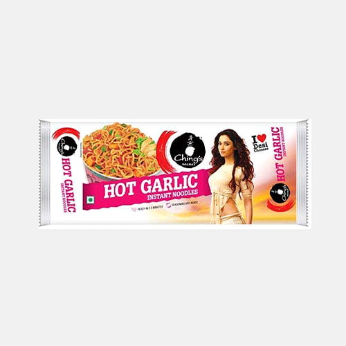 Ching’s Secret Hot Garlic Instant Noodles – 240gm. Spicy, garlicky, Indo-Chinese noodles ready in 2–3 minutes. Fiery flavour, perfect for quick meals.