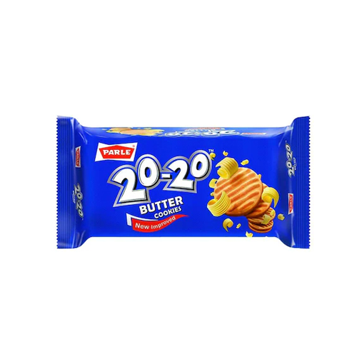 Parle 20-20 Butter Cookies – 200g. Crispy, buttery golden biscuits made with real butter. Perfect for tea-time or family snacking. Available at Shanti Fresh Bhubaneswar.