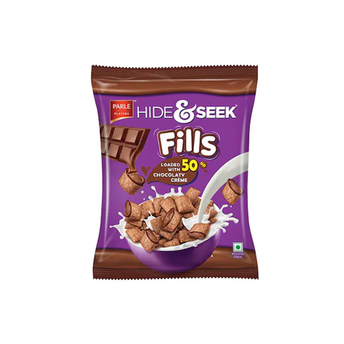 Parle Hide & Seek Fills – 33g. Crunchy choco-filled biscuits with a rich molten chocolate centre. Perfect mini treat for chocolate lovers. Available at Shanti Fresh Bhubaneswar.