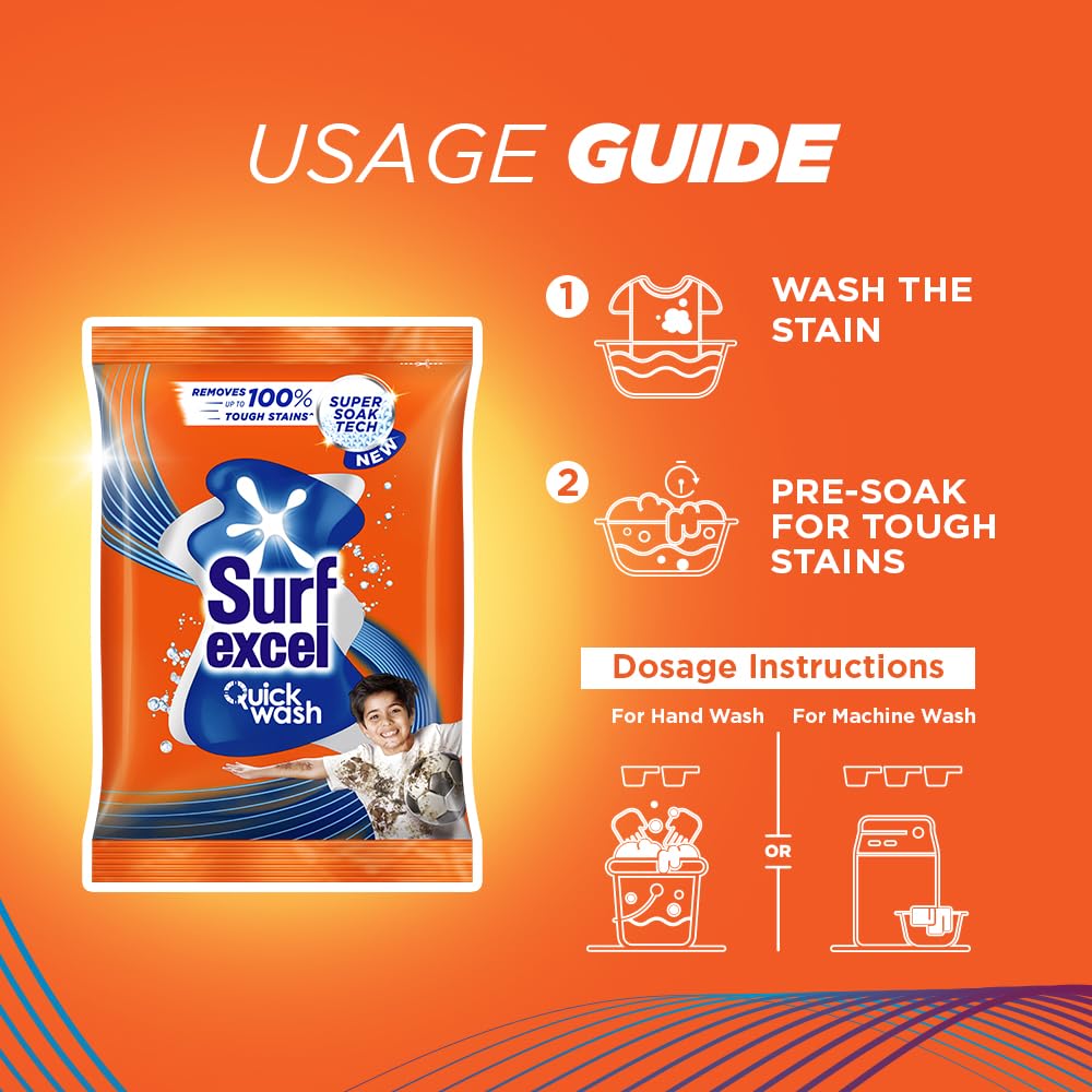 Surf Excel Quick Wash Detergent Powder 500gm – fast-acting formula for bright, clean clothes. Works in both hand and machine wash. Buy online from Shanti Fresh Bhubaneswar.