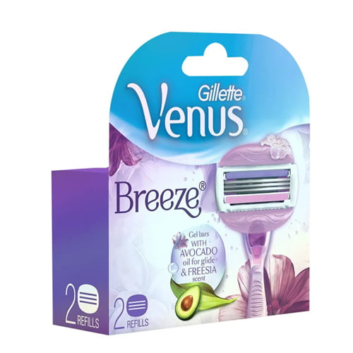 Gillette Venus Breeze Cartridges 2N – 3-blade razor refills with built-in gel bars for smooth & soft shaving. Compatible with all Venus handles. Available at Shanti Fresh Bhubaneswar.