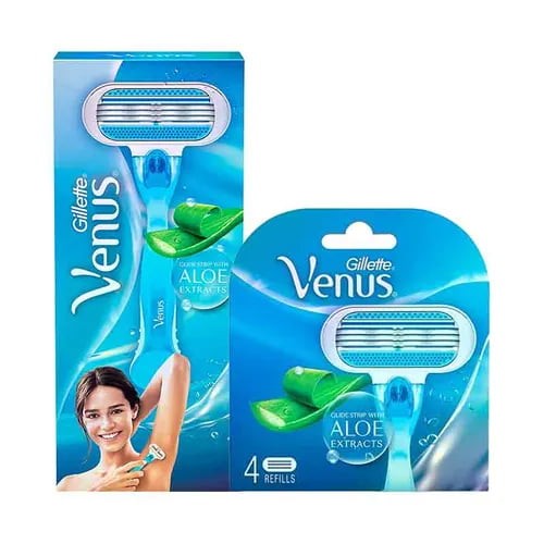 Gillette Venus Razor – 3-blade women’s razor with pivoting head and cushioned handle for a smooth, gentle shave. Compatible with all Venus cartridges. Available at Shanti Fresh Bhubaneswar.