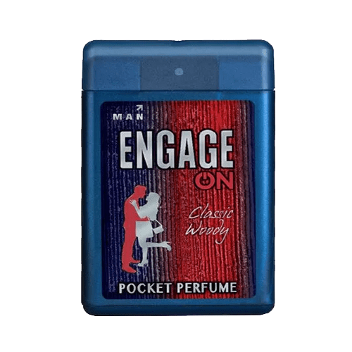 Engage ON Pocket Perfume Classic Woody 17ml – rich, masculine woody fragrance in a compact bottle. Long-lasting and travel-friendly. Available online at Shanti Fresh Grocery Bhubaneswar.